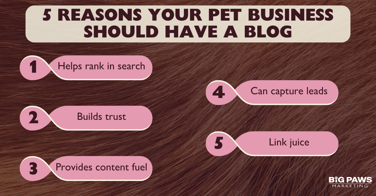 Blog posts are an incredibly effective way for pet businesses to get more traffic, generate revenue, build authority and trust, and assign value to product pages.